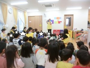 そのあとは各クラスの先生たちの紹介をクイズ形式でしました☺「○○先生ー!」と子どもたちも盛り上がっていました💕