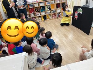 お部屋に集まってクリスマスの手遊びやパネルシアターを楽しみました💕