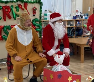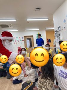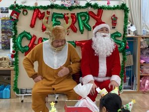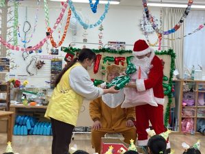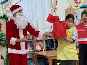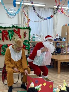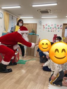 出し物が終わると、「リンリンリン…🎵」と鈴の音が聞こえてきてサンタさんが登場😙